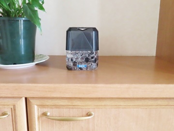 カラーがブラックの四角いフォルムの中に大きくて丸いブラックと透明の消臭ビーズが入っています。