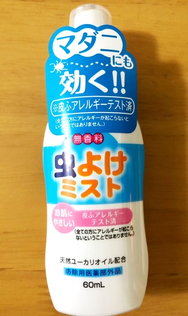 虫よけ、と一言で言っても色々なタイプがありますが、こちらのミストは肌に塗布するタイプの虫よけになります。