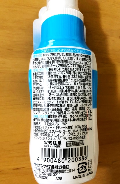 幼稚園に行く前にスプレーしているので、詳細の時間は分かりませんが、刺されている数は減っているように思います。(私も)