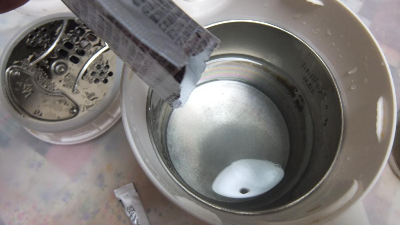 ほぼ毎日使っている電気ポット。ポットのまわりや注ぎ口の汚れは気になるのでふくことはありました。それに対して内部はあまりみることがなく、水をいれるときも汚れが気になりませんでした。でもよくみると白っぽい汚れのようなものが底についていました。そこでこの商品を使いました。使い方はとっても簡単で満水目盛りまで水をいれこの商品を1包いれお湯を沸かす。沸かしたらそのまま2~3時間放置し4~5回水洗いしたらOK。細粒はさっと溶け、クエン酸100%で嫌なニオイもなかったです。実際に使って水洗いしたら、めちゃピッカピカに。思っていたよりもかなり汚れていたようです。洗浄中のシール付きで洗浄中はシールを貼っておくと洗浄中とわかるので便利です。