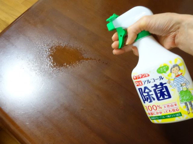 そこで、Pix キッチン用アルコール除菌スプレーをテーブルに、シュッ♪