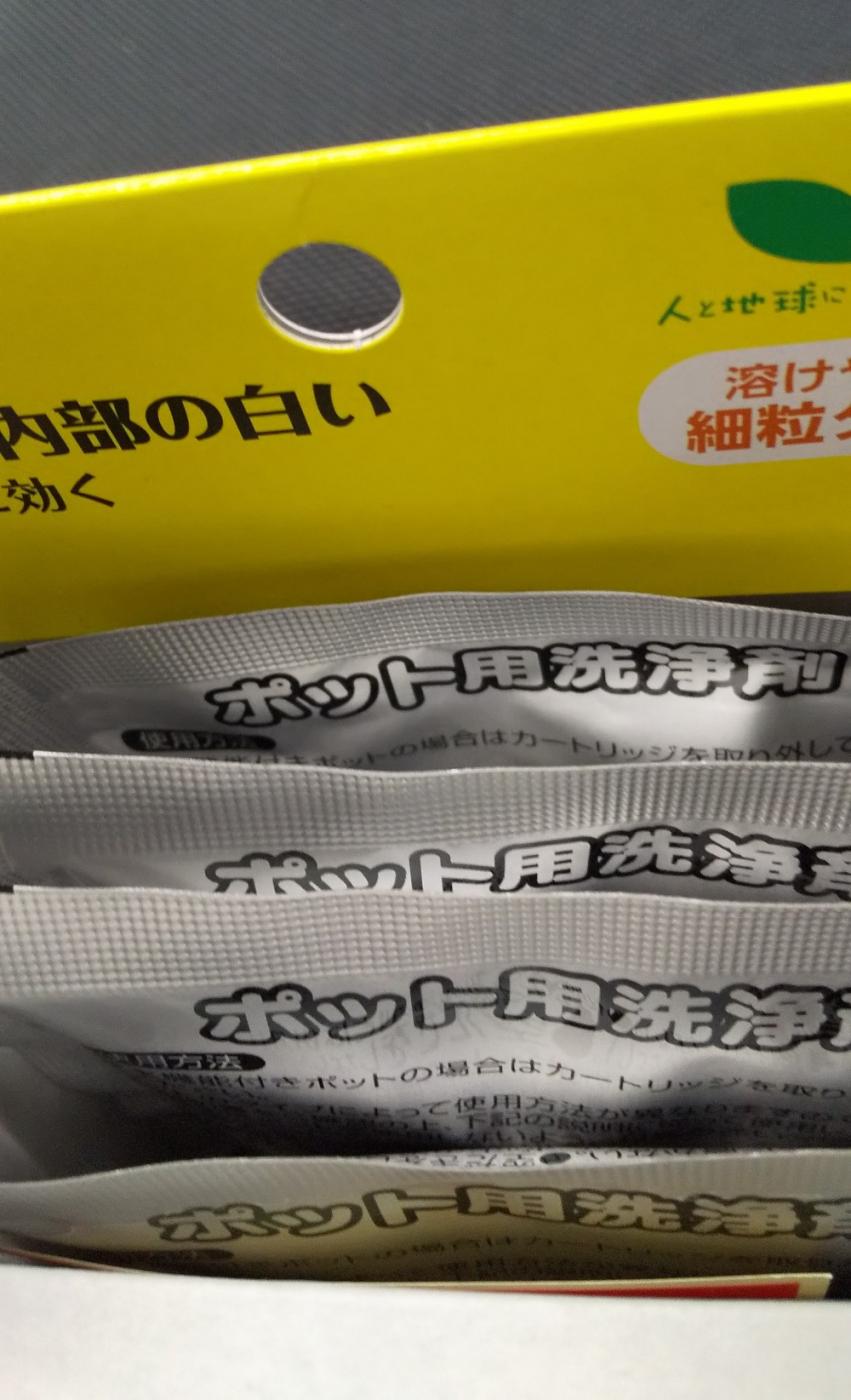 そんなことで製品をいただいたので、このライオンケミカル製「ポット丸ごと洗浄 Pix 4包入 電気・保温ポット用」を使ってみました。