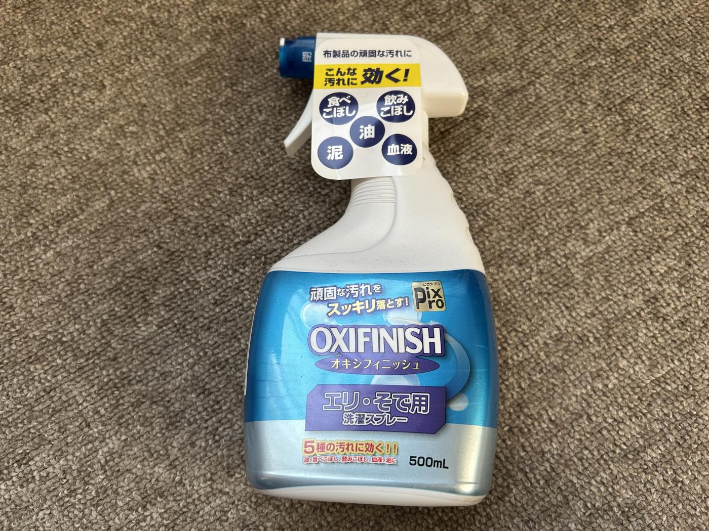 今まで油が付いたりしたら、洗剤を直接つけて、少しもみ洗いして、その後に洗濯していたけど、こちらのオキシフィニッシュは、もみ洗いなどする手間などなく、シュッと吹きかけるだけなのでめっちゃ楽です!