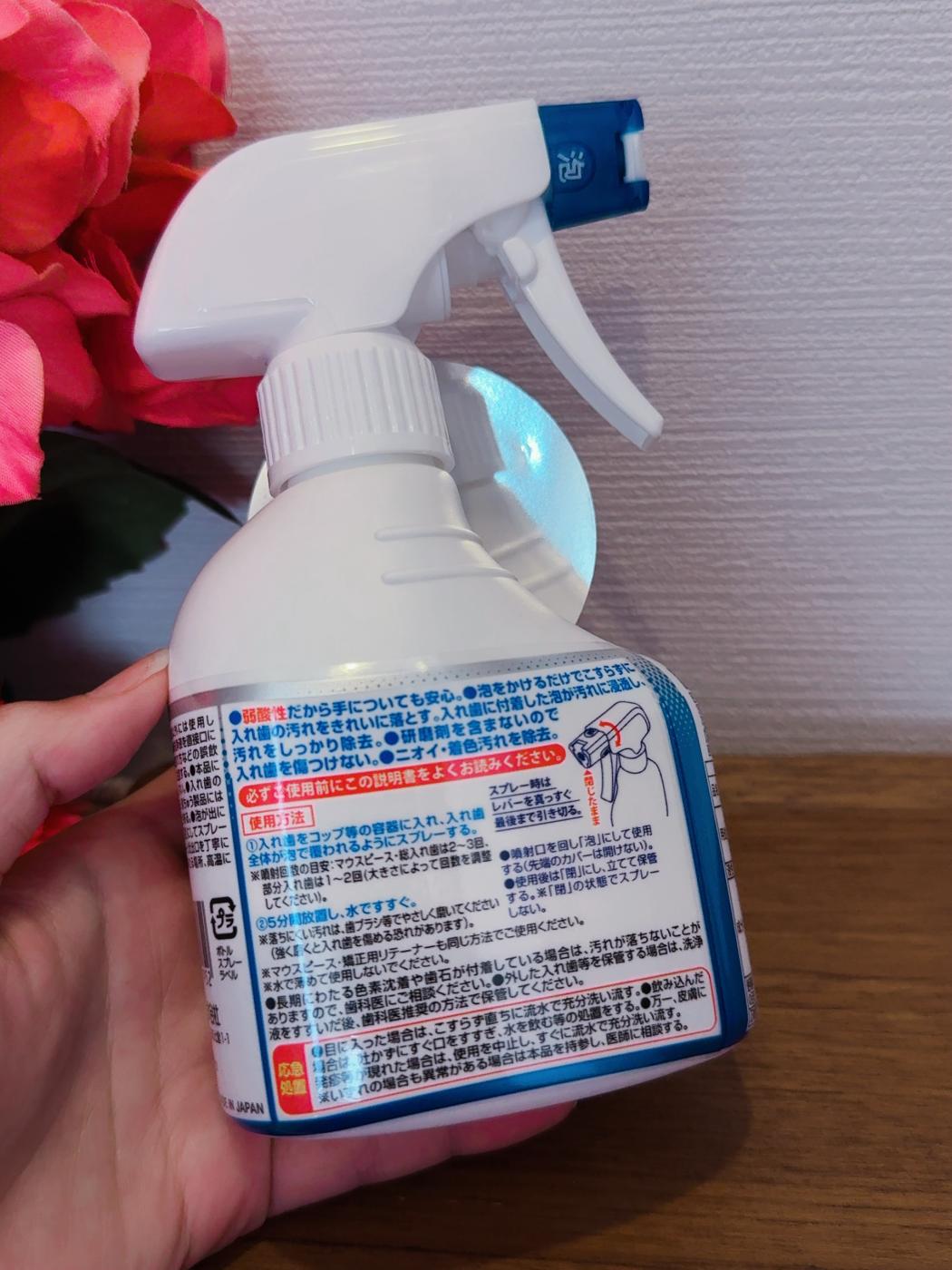 入れ歯やマウスピースを容器に入れて、全体が泡で覆われるようにスプレー。