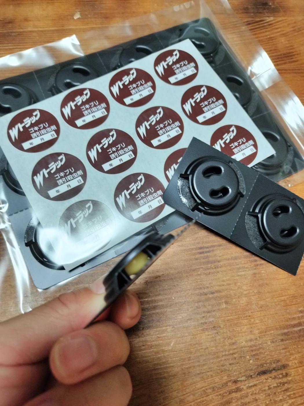 中には黄色の丸いガムみたいなものが入っており、半生タイプでゴキブリが好むタイプらしいです!