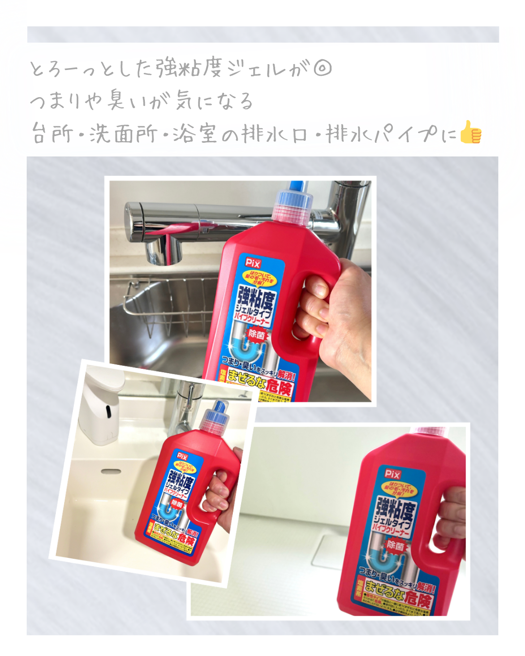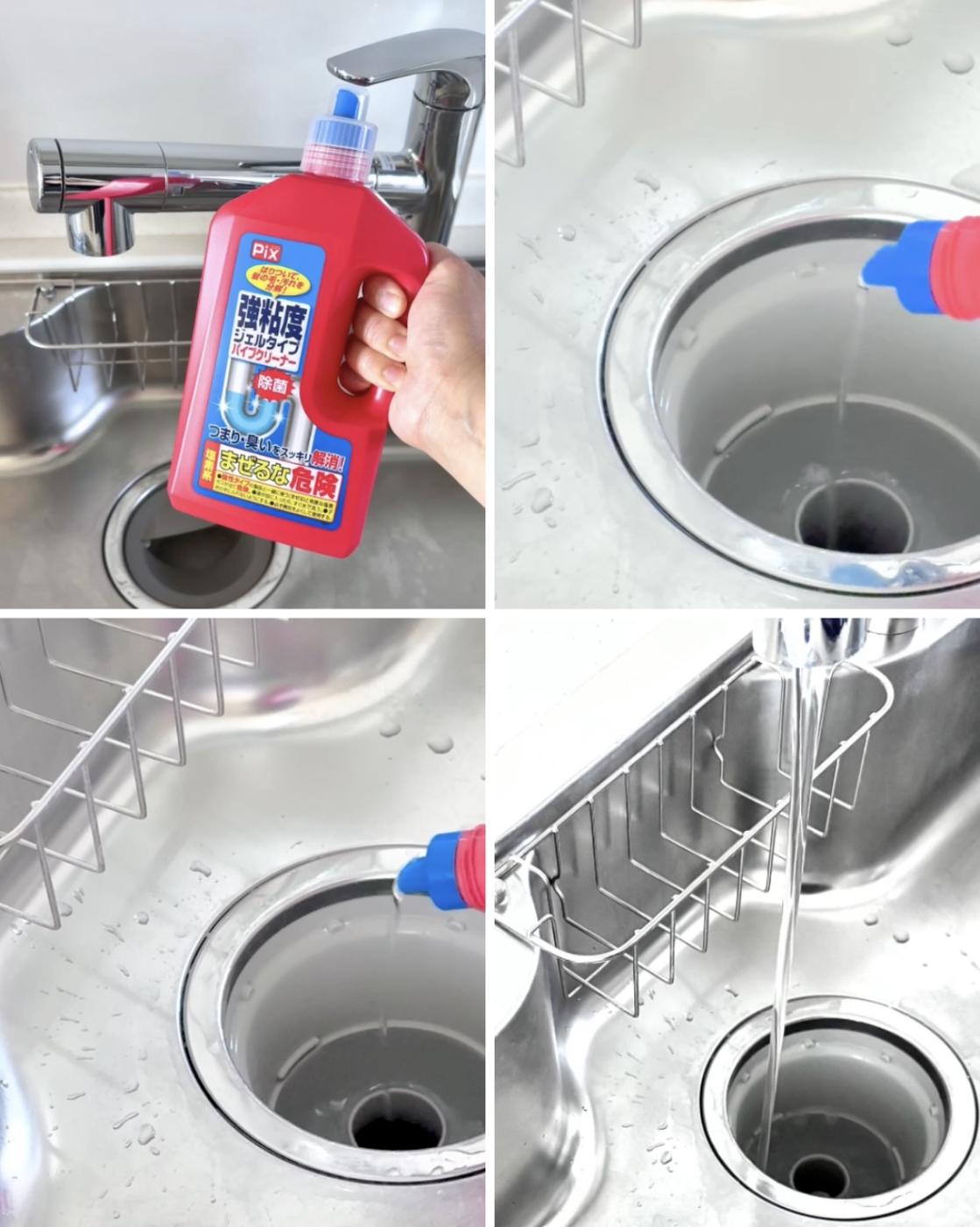 洗面所の排水口に不快なヌメリと臭いが出始めたので、「Pix 強粘度ジェルタイプ パイプクリーナー 800 g...