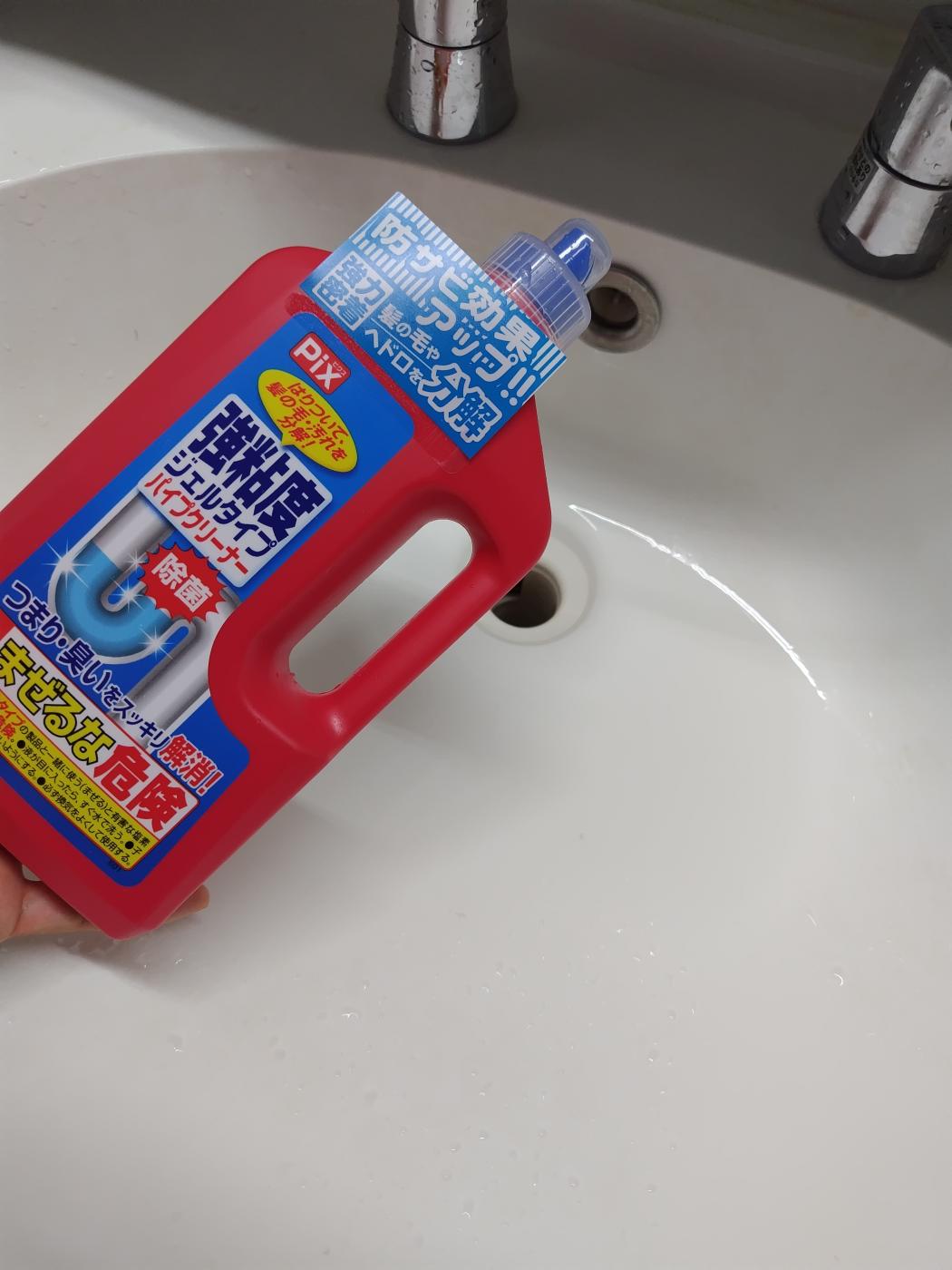 洗面所の排水口に不快なヌメリと臭いが出始めたので、「Pix 強粘度ジェルタイプ パイプクリーナー 800 g...