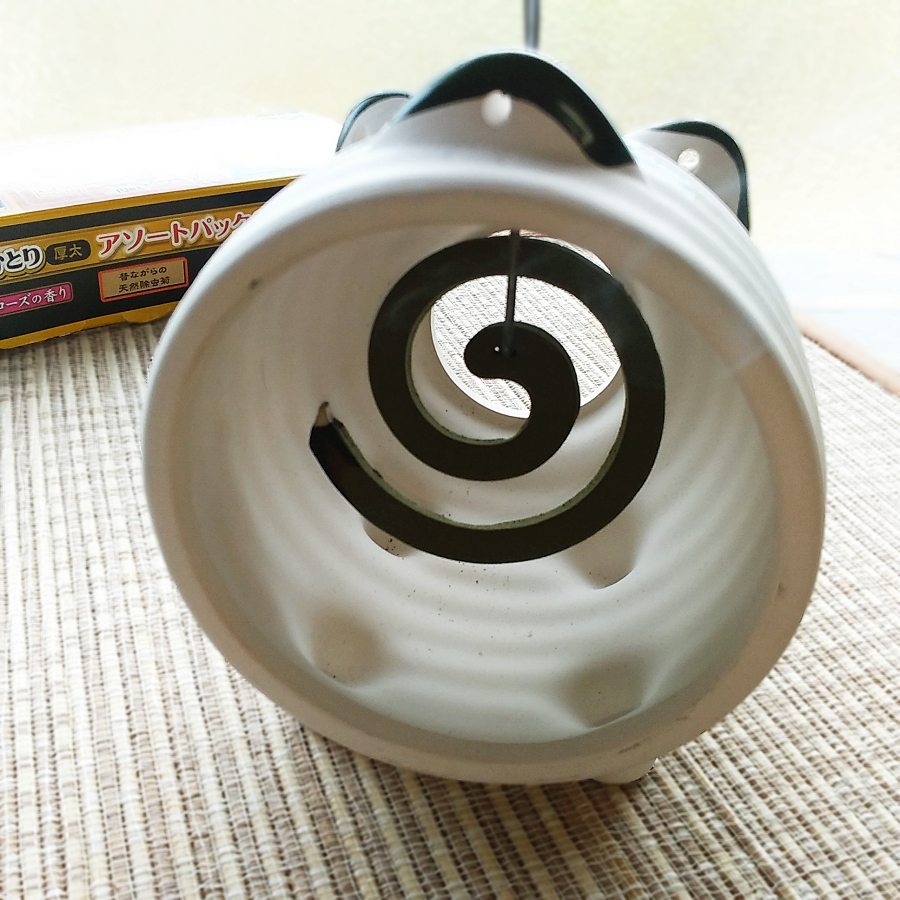 蚊取り線香ケースに入れて使用してみました。夕方でも蚊が寄って来ない気がします。