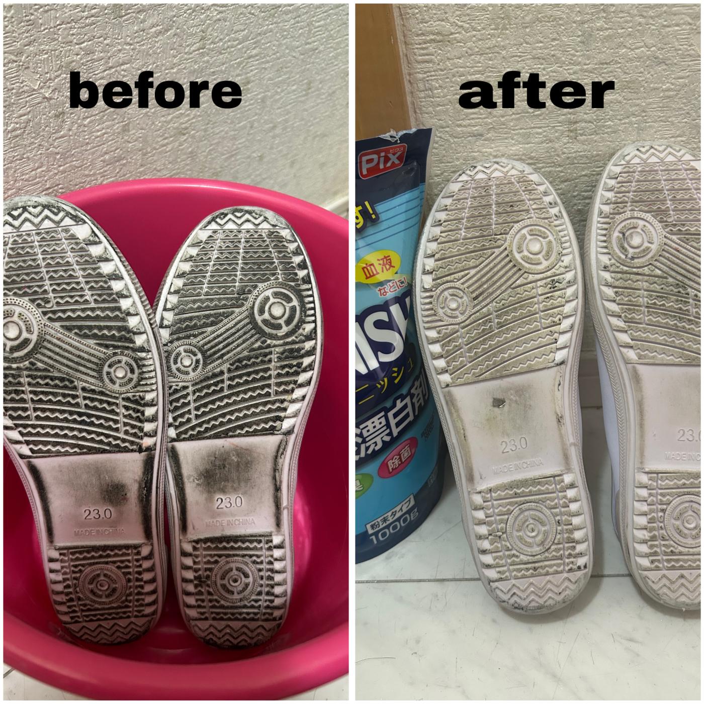 上履きを入れて2時間放置そのあと軽くブラシで擦ってこんなに綺麗に落ちました。
