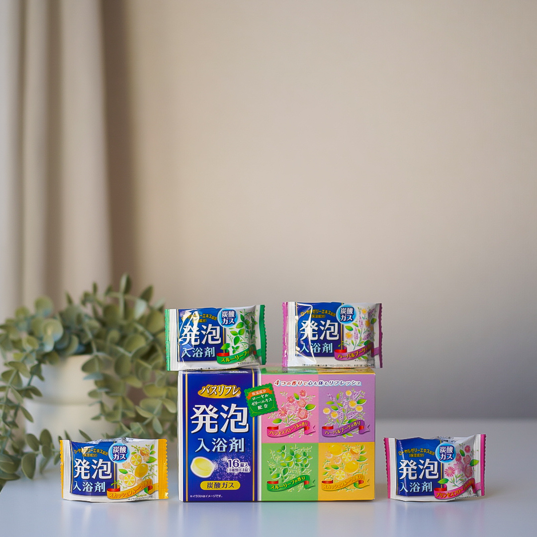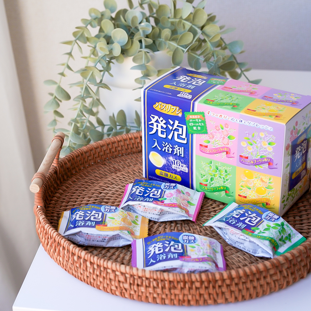 バスリフレ 浴用発泡入浴剤は、4つの香りとカラフルな湯色が楽しめる発泡タイプの入浴剤セットです🛁🌈 ...