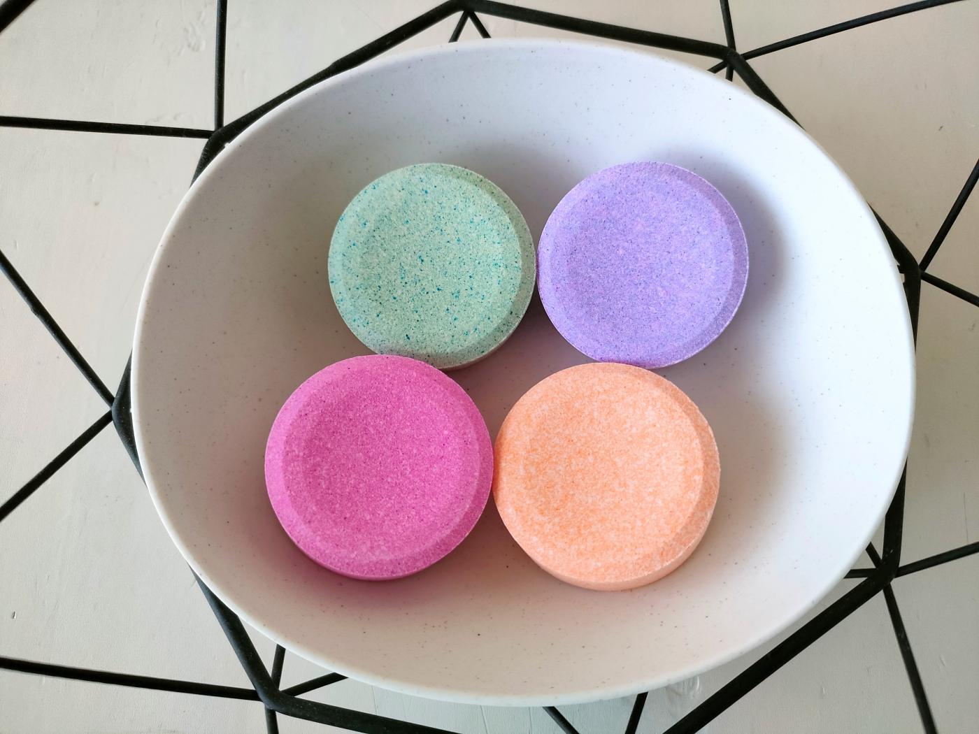 \4つの香りで心も体もリフレッシュ!/ 「バスリフレ 浴用発泡入浴剤 16錠入」 4種類のカラフルな色...
