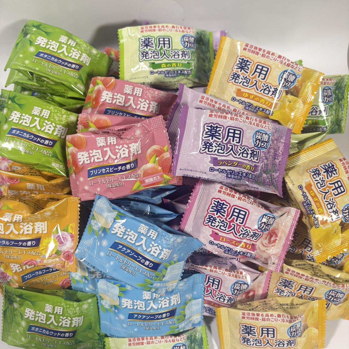 種類のカラフルな色のお湯とほのかな香りで、 身体も心もリラックスできる 炭酸ガス入り薬用入浴剤...
