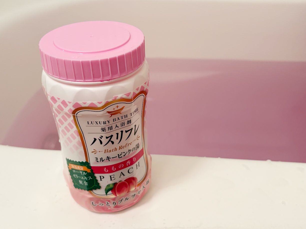 コエタスのモニターキャンペーンでいただいた「【薬用入浴剤】バスリフレ ミルキーピンクの湯 ももの香り」についてのレビューです。