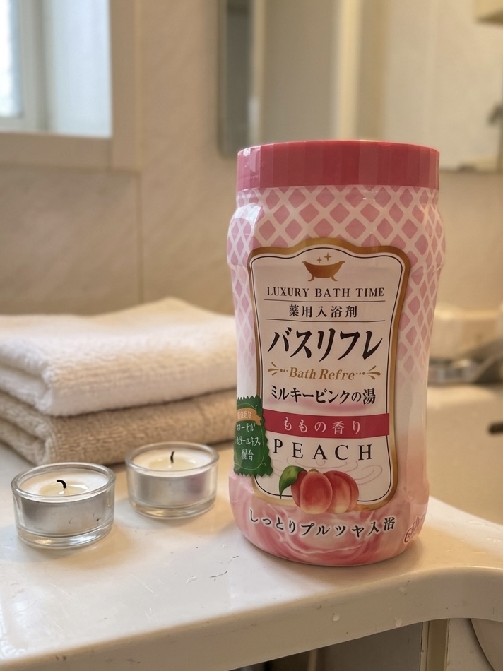 実際に使ってみると、お湯に入れた瞬間にふんわりとピーチの香りが広がって、とてもリラックスできる空間に。香りは強すぎず、自然でやさしい印象なので、香りものが苦手な方でも使いやすそうだと感じました。