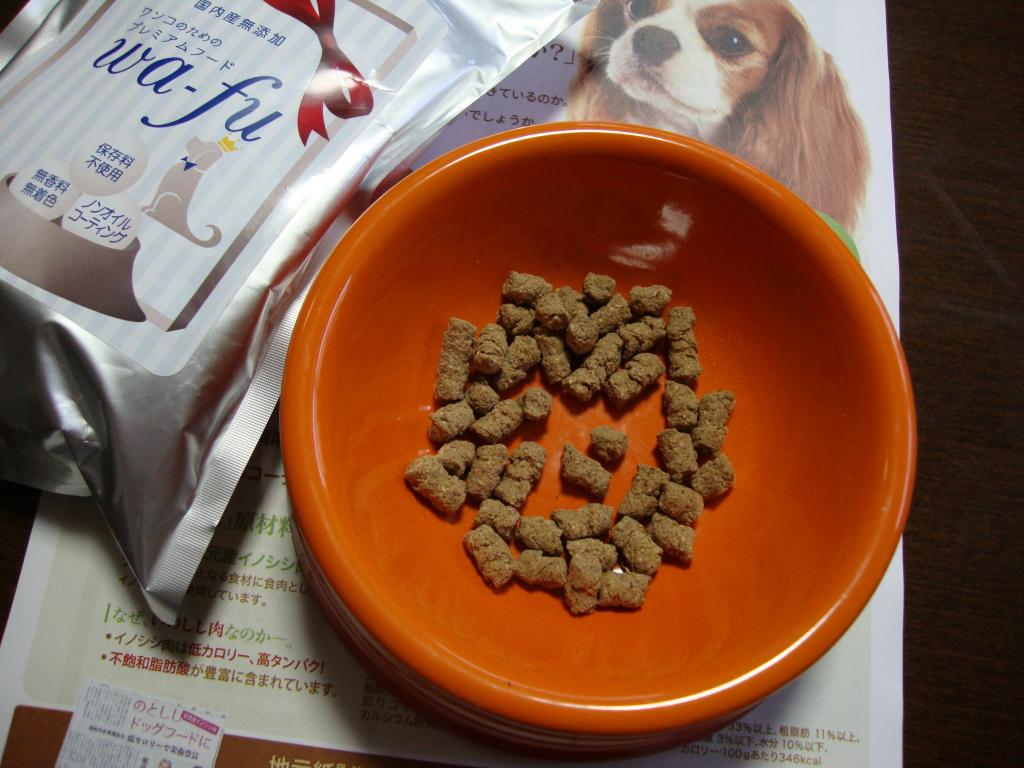 早速、「wa-fu(ワフ) プレミアムドッグフード大粒」、試させていただきました。愛犬は、新しい物好きで、食べ慣れると、飽きてしまいます。まずは、おやつとして、与えて見ました。クンクン、芳ばしい香りにつられて、パクリ。次に、いつものフードに混ぜて、徐々に、増やしていきました。慣れる前に、食べきりました。