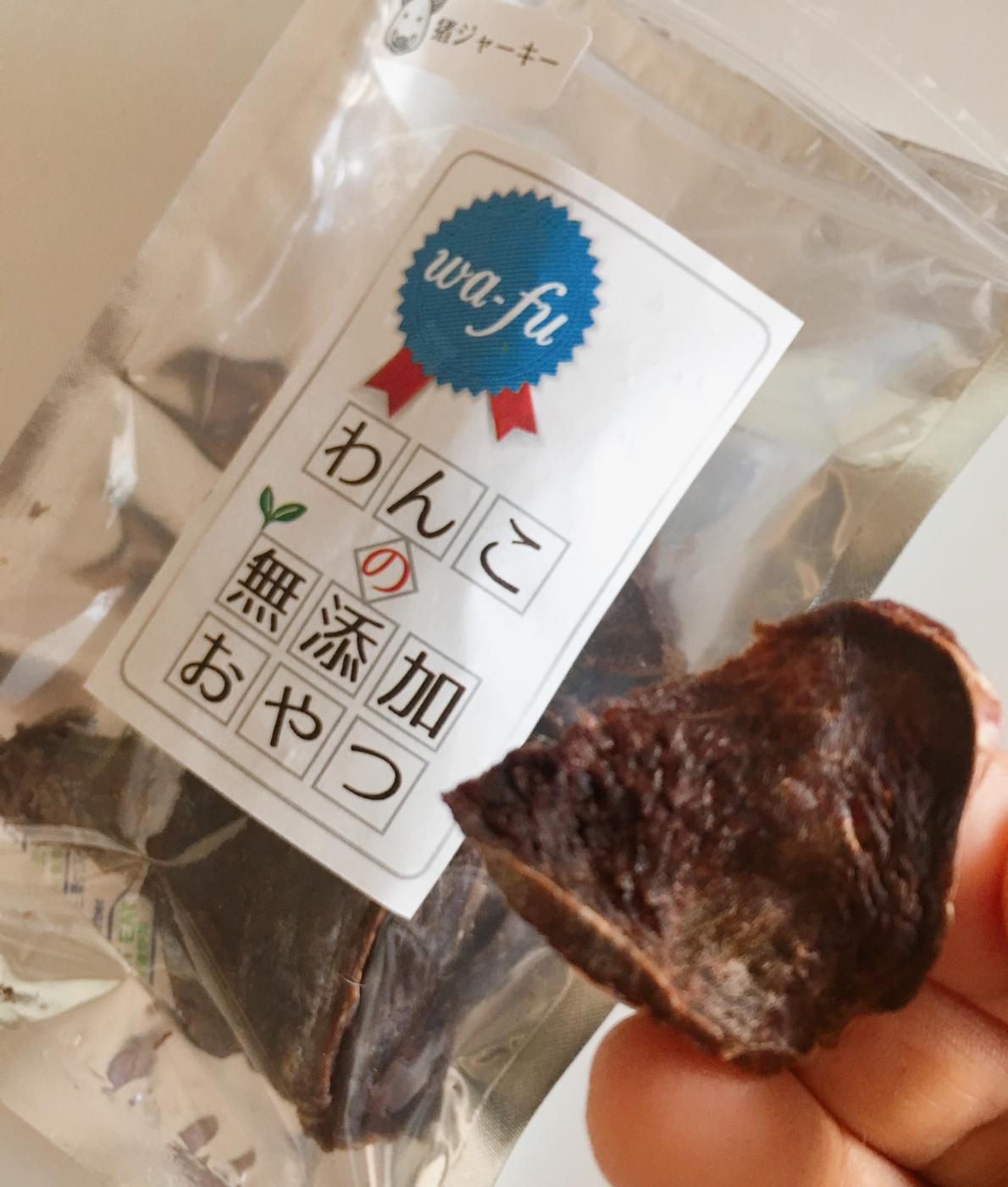 こちらの商品はわんこのためのオヤツ、無添加いのししジャーキーです。