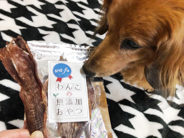 今回はwa-fuさんの石川県産いのしし肉使用「いのししジャーキー」を愛犬に与えてみました♪