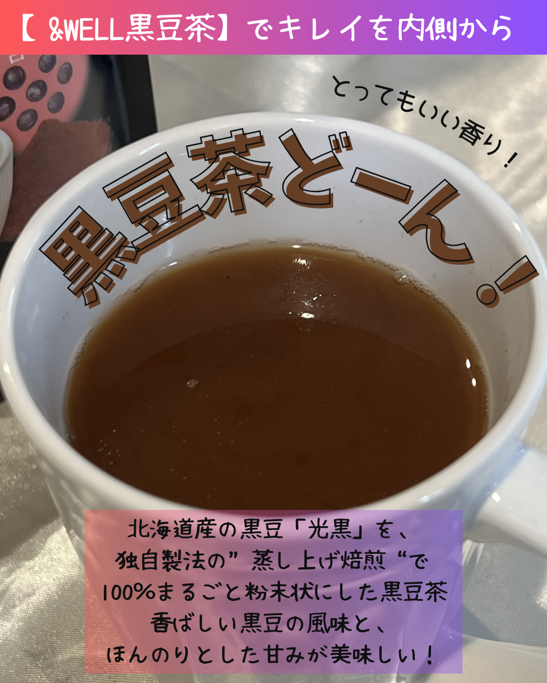 ぜひ、皆さんも&WELL黒豆茶で、美味しくキレイをチャージしてね❣️