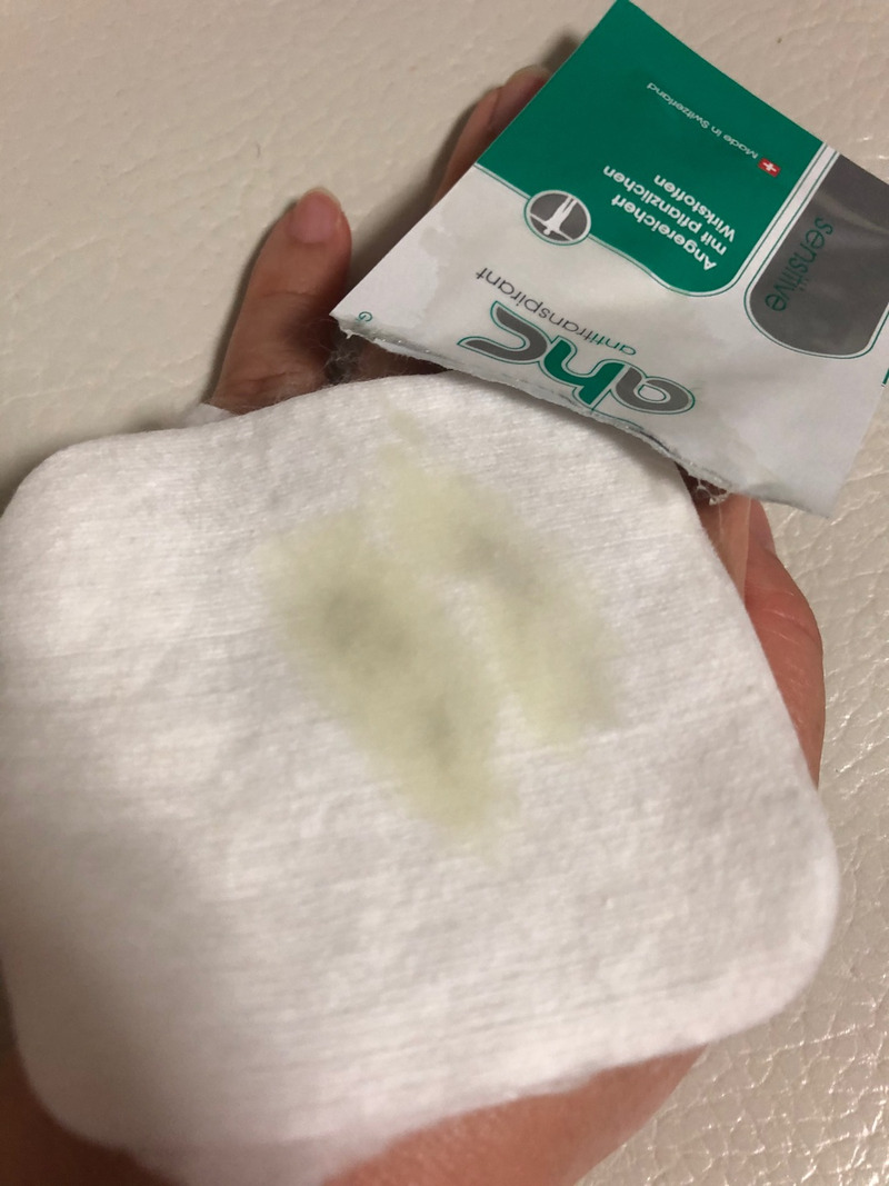 コットンにAHCの液を染み込ませ、汗を抑えたい部分に数回にわけてコットンで液を塗りました。