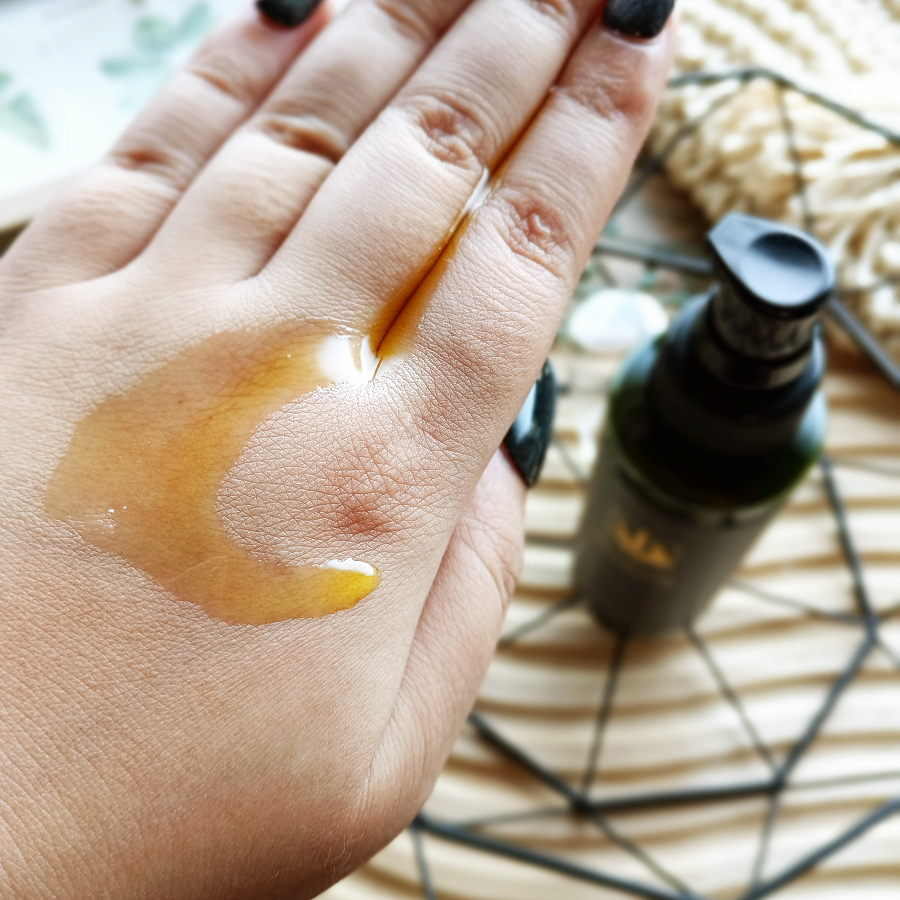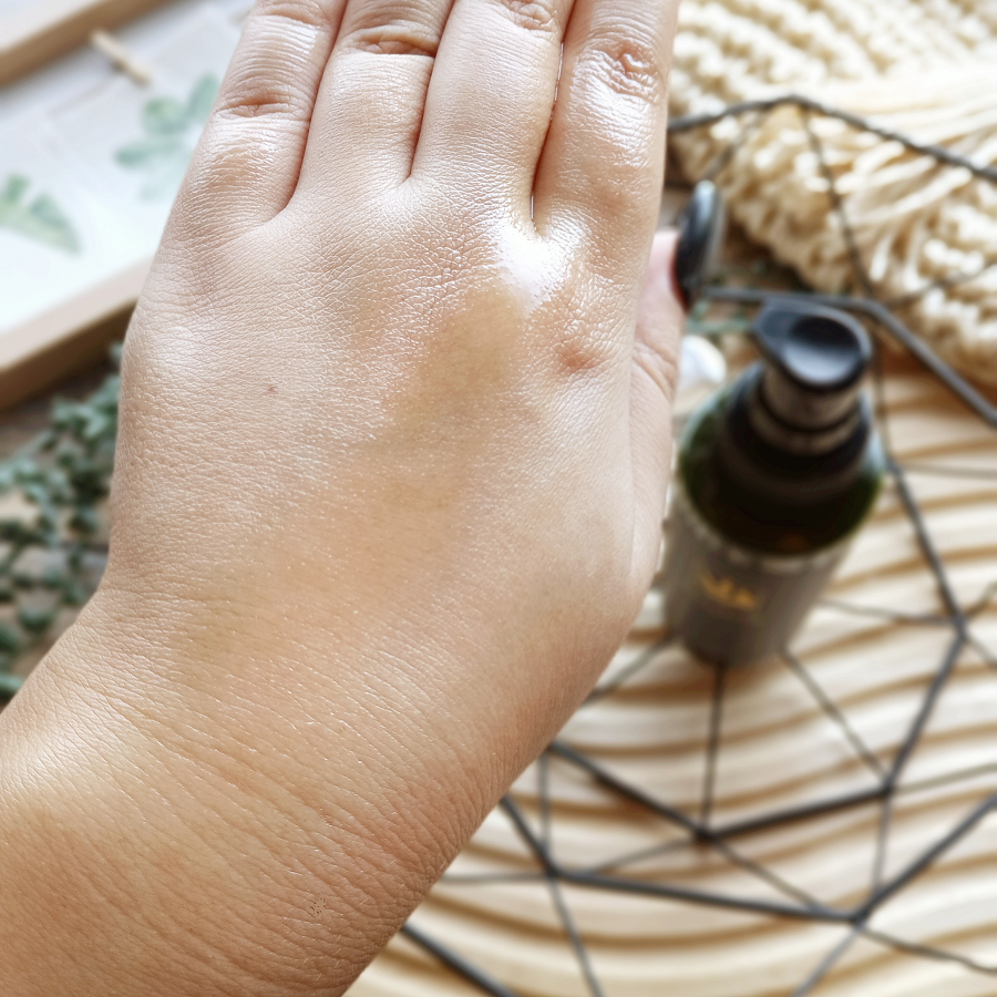あまりトロミのないサラッとしたオイルです。肌に伸ばすと少し温かさを感じました。