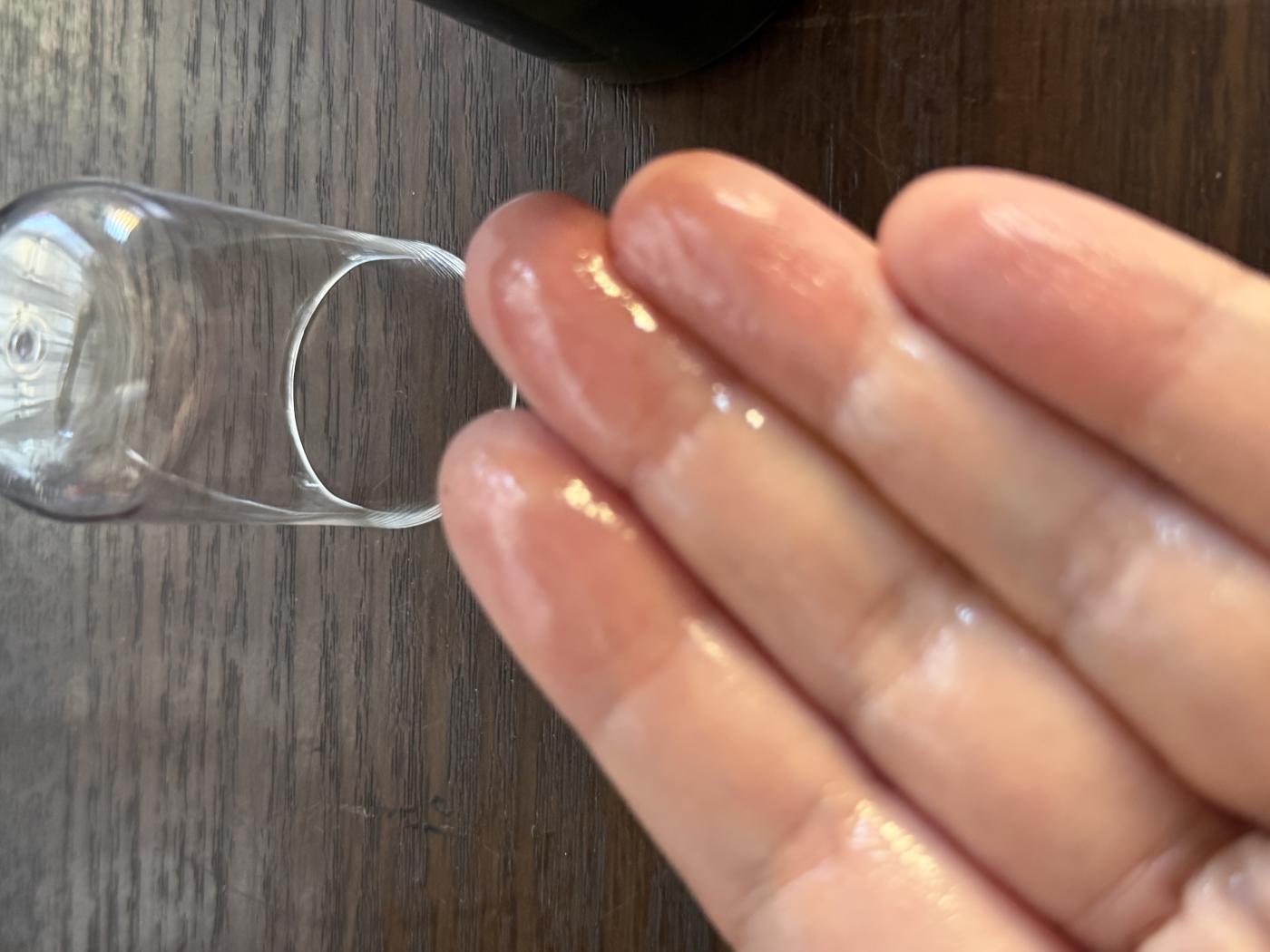 プッシュしてみるとスキンオイルとだけあってテクスチャーはオイリー