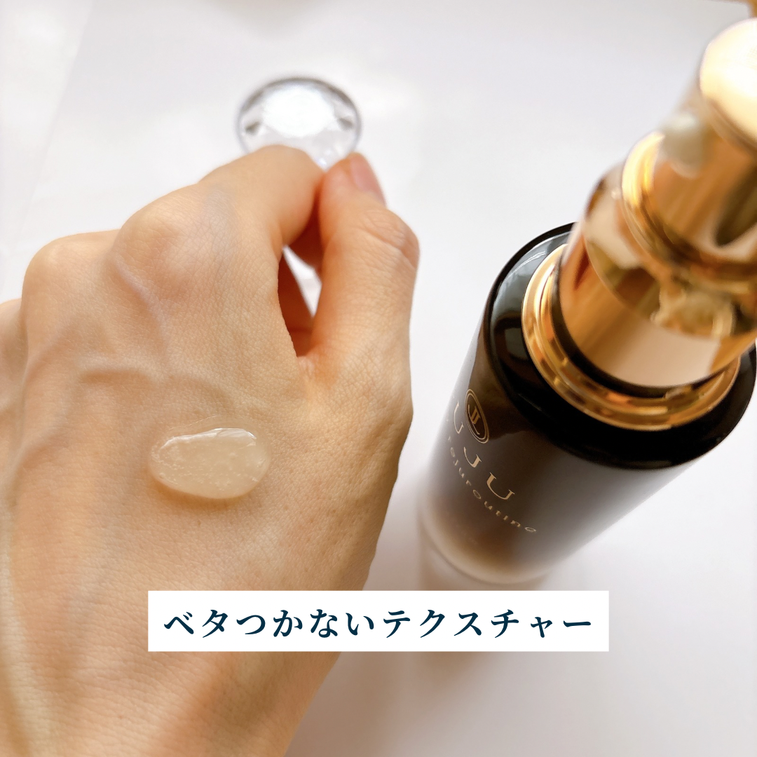 ベタつきがほとんどなく、肌表面はしっとりとした感触になるのに、重さがないのが特徴的だと感じました。この軽やかな使い心地は、次に使うスキンケアアイテムの邪魔をしないので、いつものルーティンにスムーズに組み込めています。