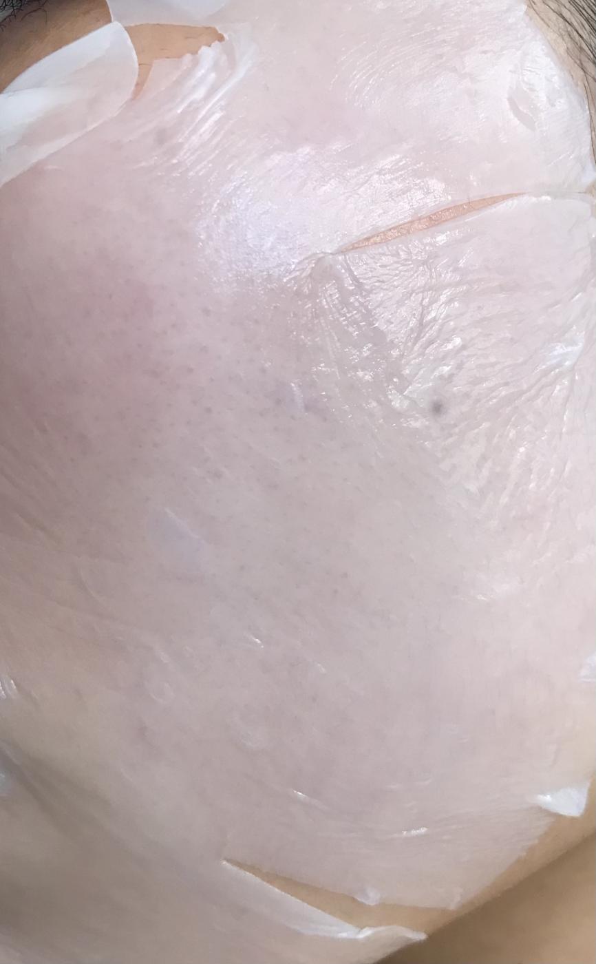 メッシュを剥がし、プルプルしたマスクを顔に密着させた後、