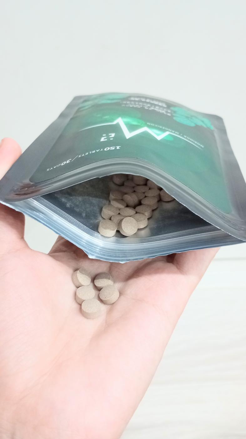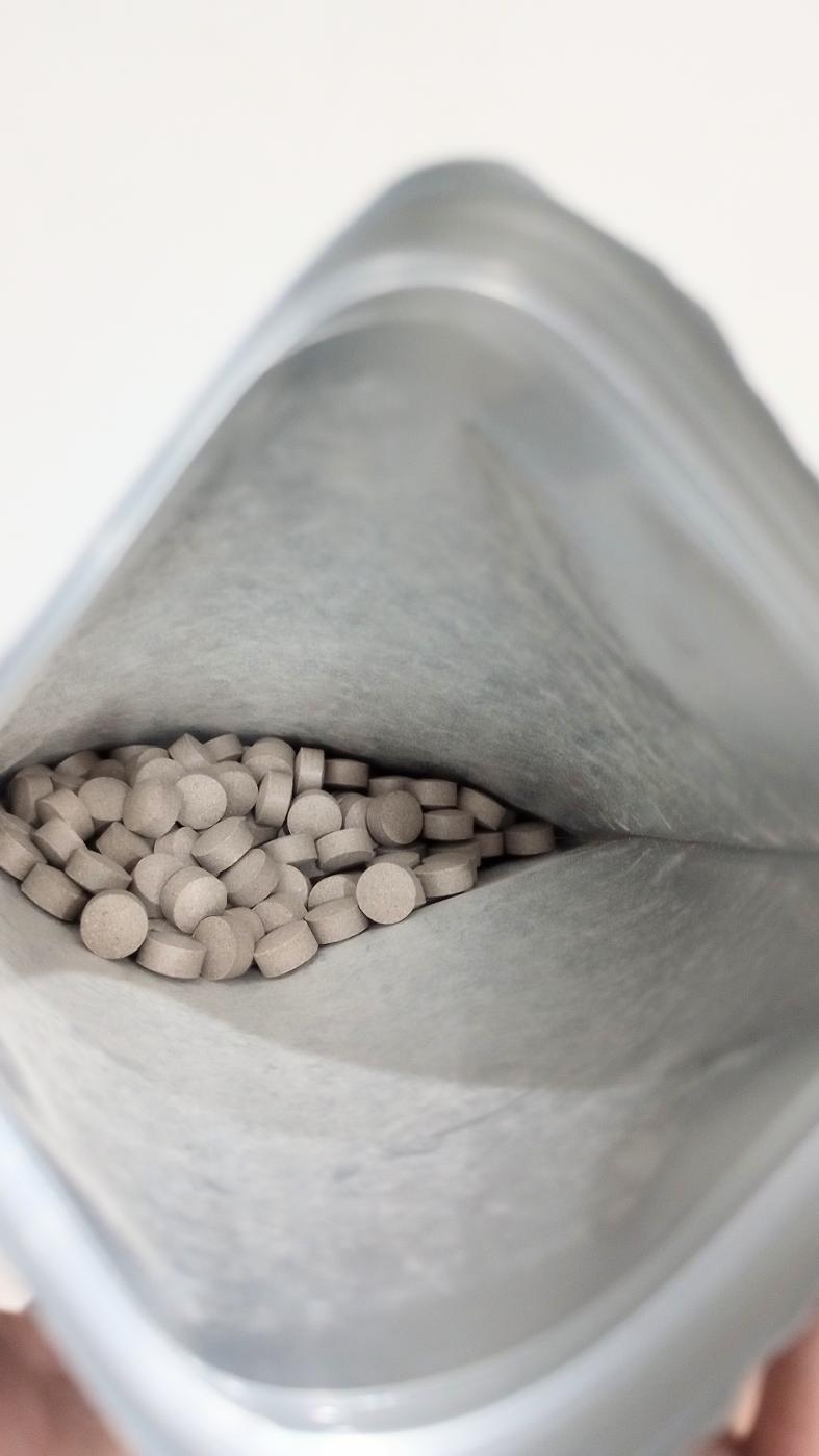 個包装ではなく、ジップのついた袋に150粒入っているのですが、かさばらず持ち歩きにも便利です。
