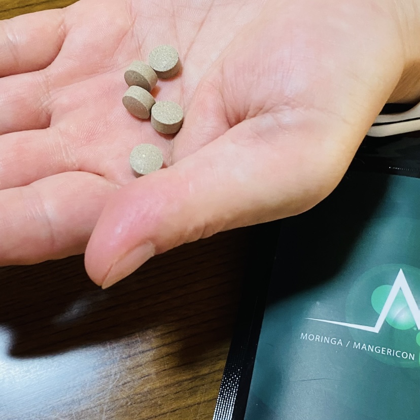 飲み方は1日5粒を目安に、水またはお湯と一緒に飲みます。粒は緑色の小さめな粒なので、夫は飲みやすかったそうです。飲むタイミングは記載されていないので好きなタイミングで飲んで良いと思いますが、サプリメントも続けて飲む事が大事だと思うので、自分なりに飲み忘れ無いタイミングを決めておくと良いと思います。ちなみに夫は晩御飯の後から就寝までの間に飲む事に決めました。
