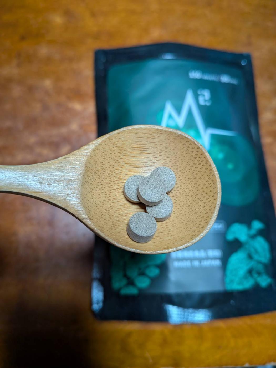 封を開けてみると、小さめの粒がたくさん。ふわっと香ばしいような香りがして、あまり青臭さを感じることもなく、1日5粒目安で。