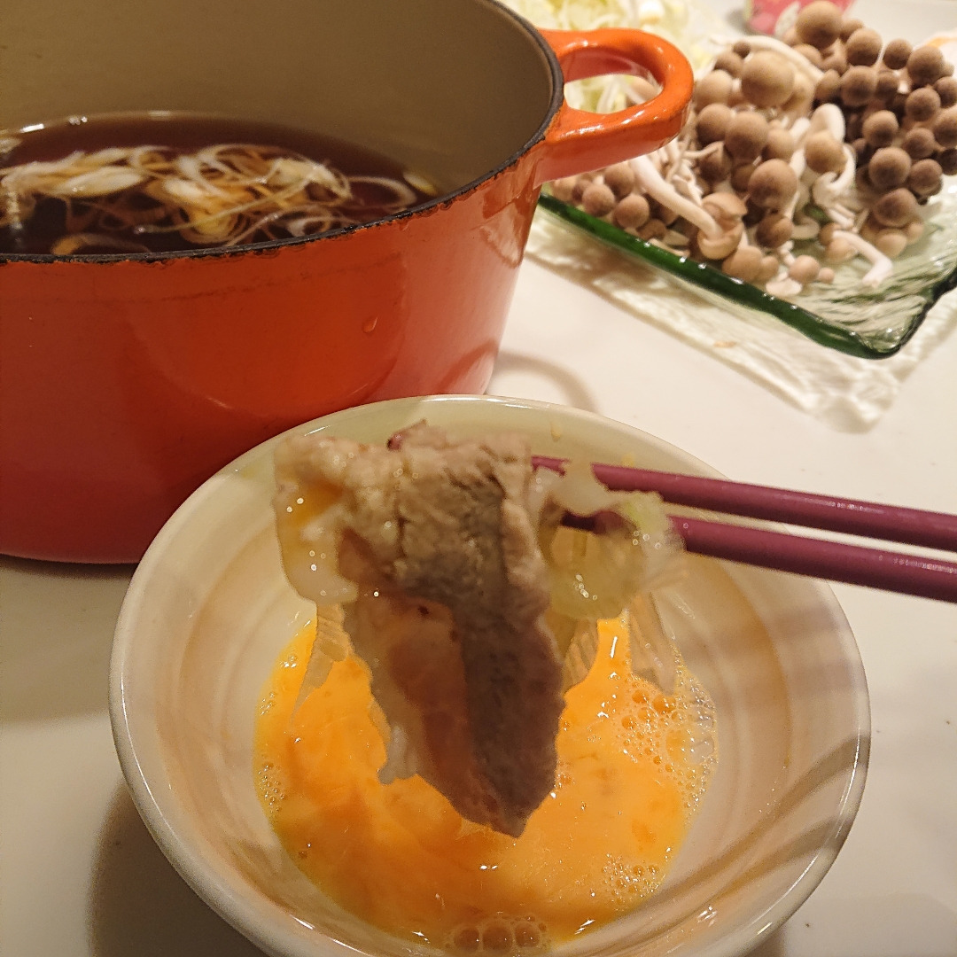 お肉はそんなに長いことお鍋に入っていたわけではないのにちょうどいい感じに味がついています。卵をまとうとまろやかになります。うん!卵はあった方がいいな。初めて食べたけれど、普通のすき焼きよりも好きかも。