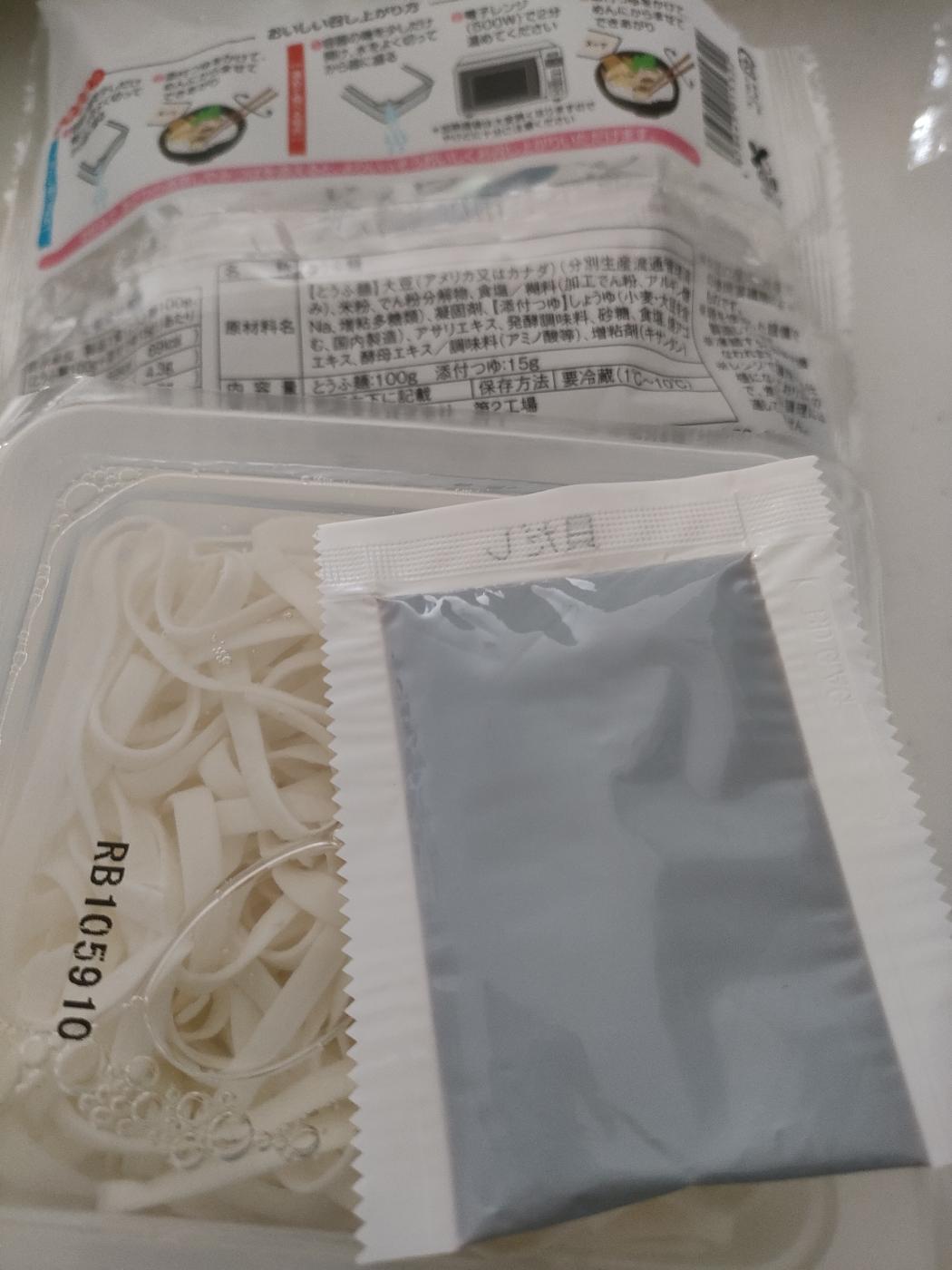 豆乳と米粉で作ったとうふ麺、食べてみました! こちら、冷蔵の商品で、1個ずつ包装されていました。袋...