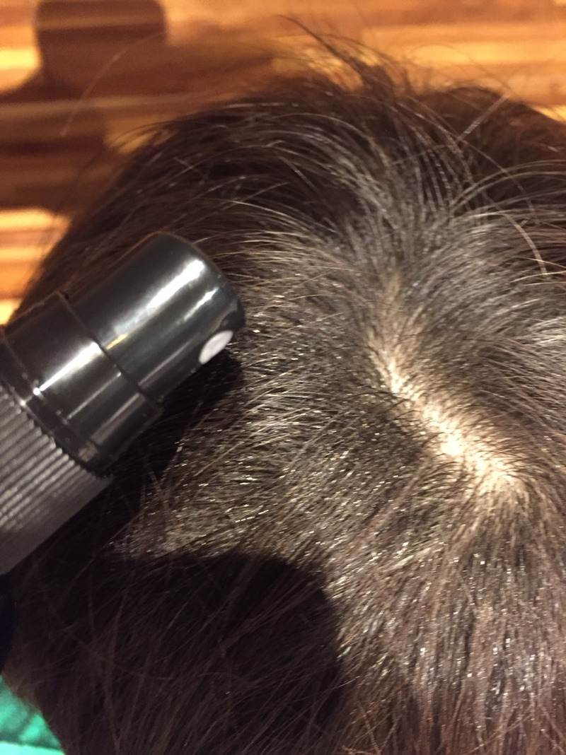 「Re-more(リモア)」を頭皮の気になる部分にシュシュッと噴きかけた後、