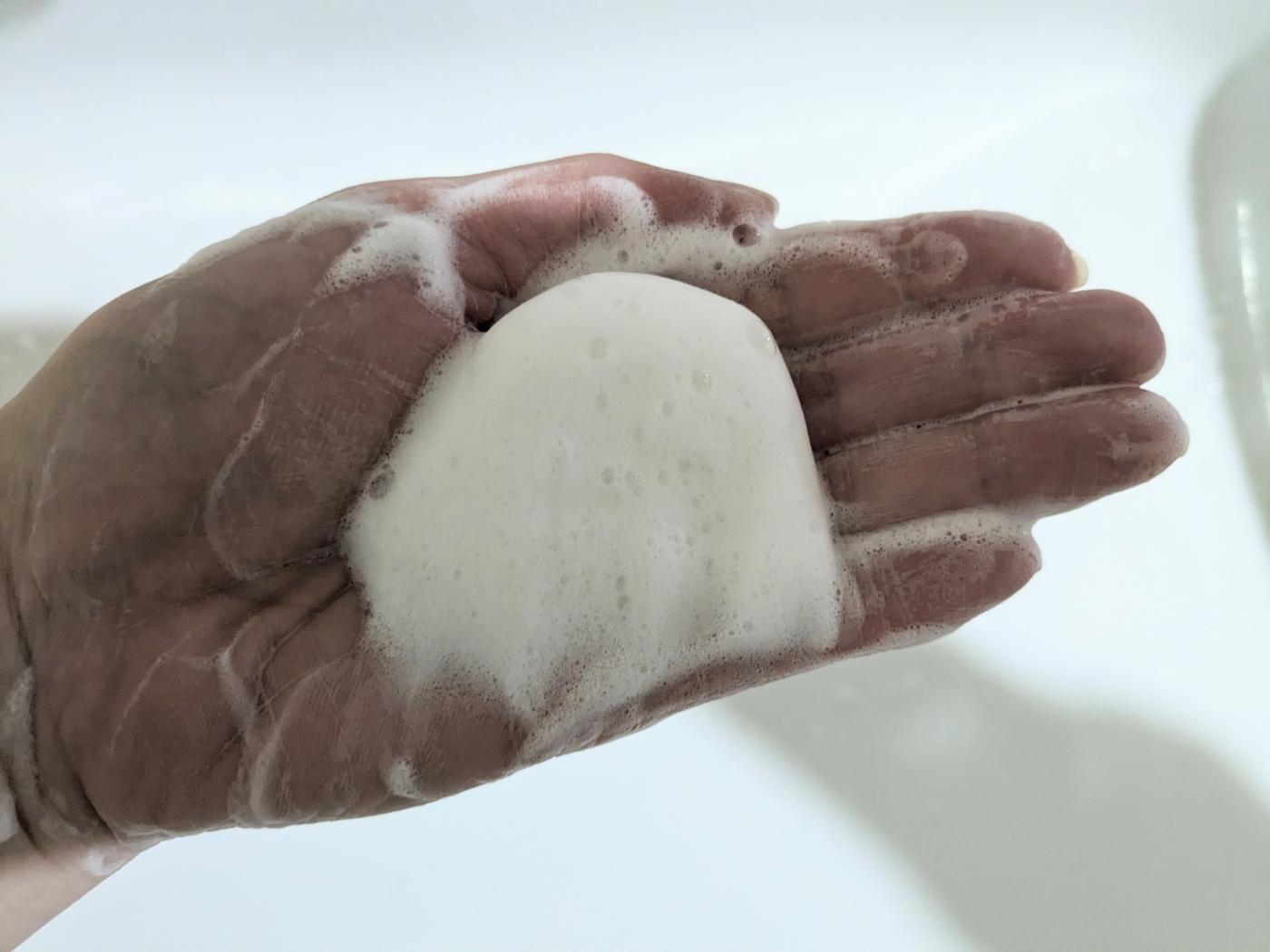 洗顔ネットを使わず手だけでも、柔らかくふわふわな泡が出来上がりました。