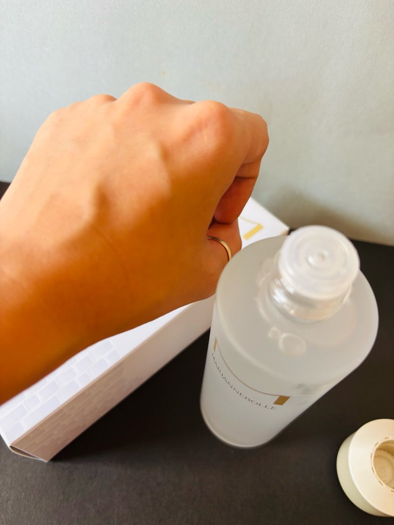 さらさらっとしたテクスチャーになっています。シャバシャバ系ではあるんだけど、なんというか水とは違って、手に出しただけでさらっとしたなめらかな感覚が分かる感じです。