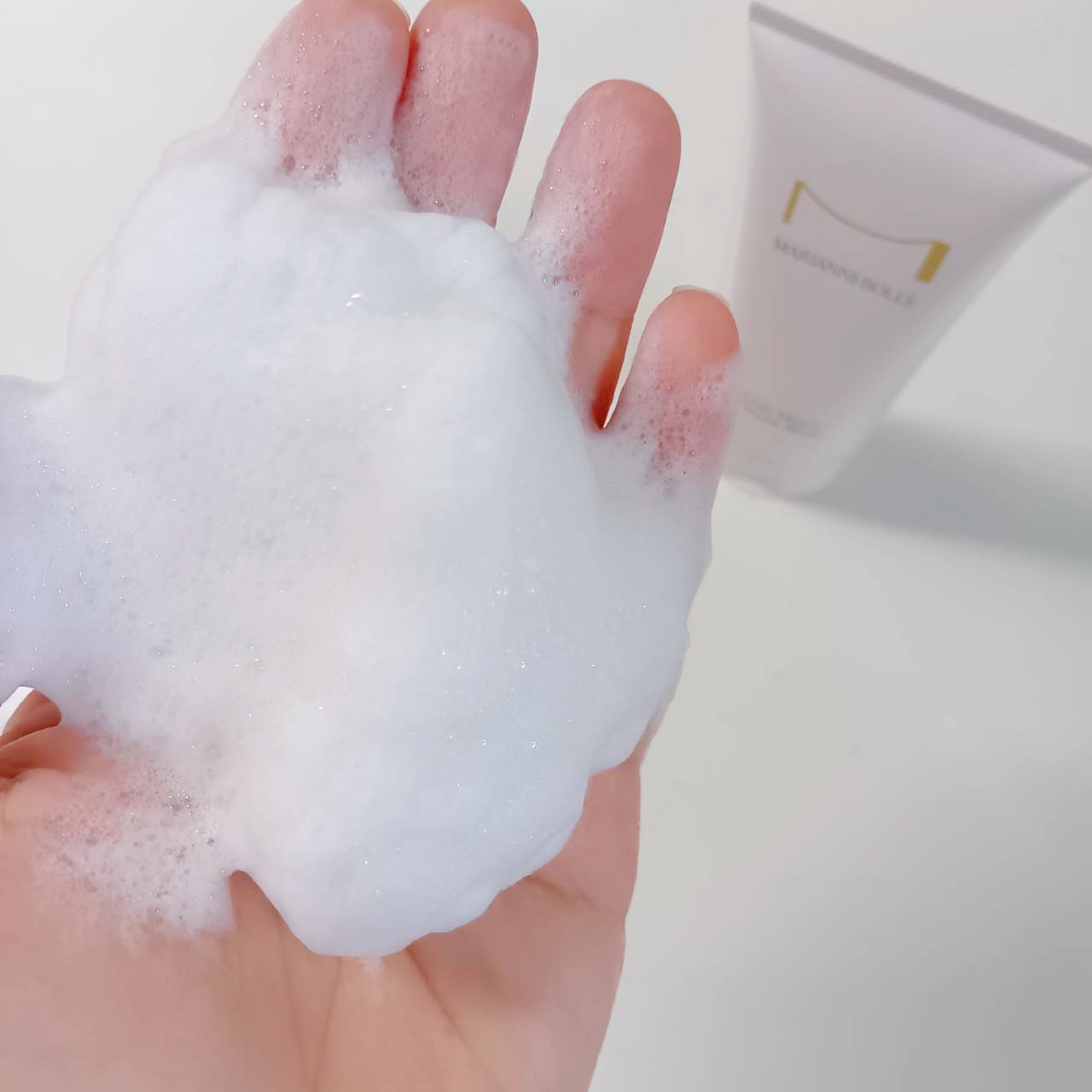 ホイップみたいに泡立って、手と肌の間にクッションができるから、こすらなくても汚れをすっきり落とせていい感じ😊👏