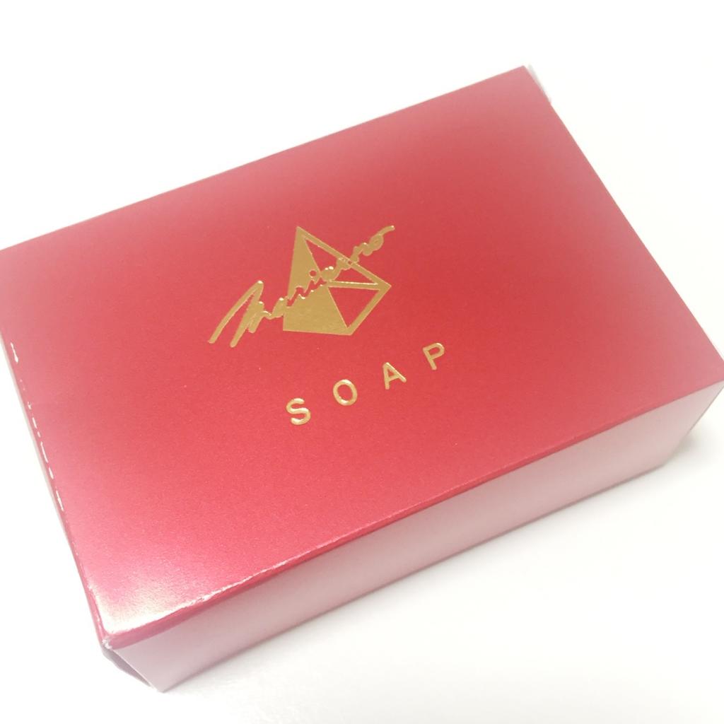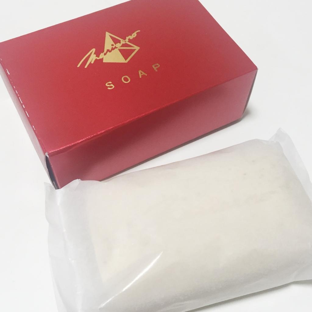 赤いボックスの中には、真っ白ではなく、ベージュのようなお色の石鹸が入っています。