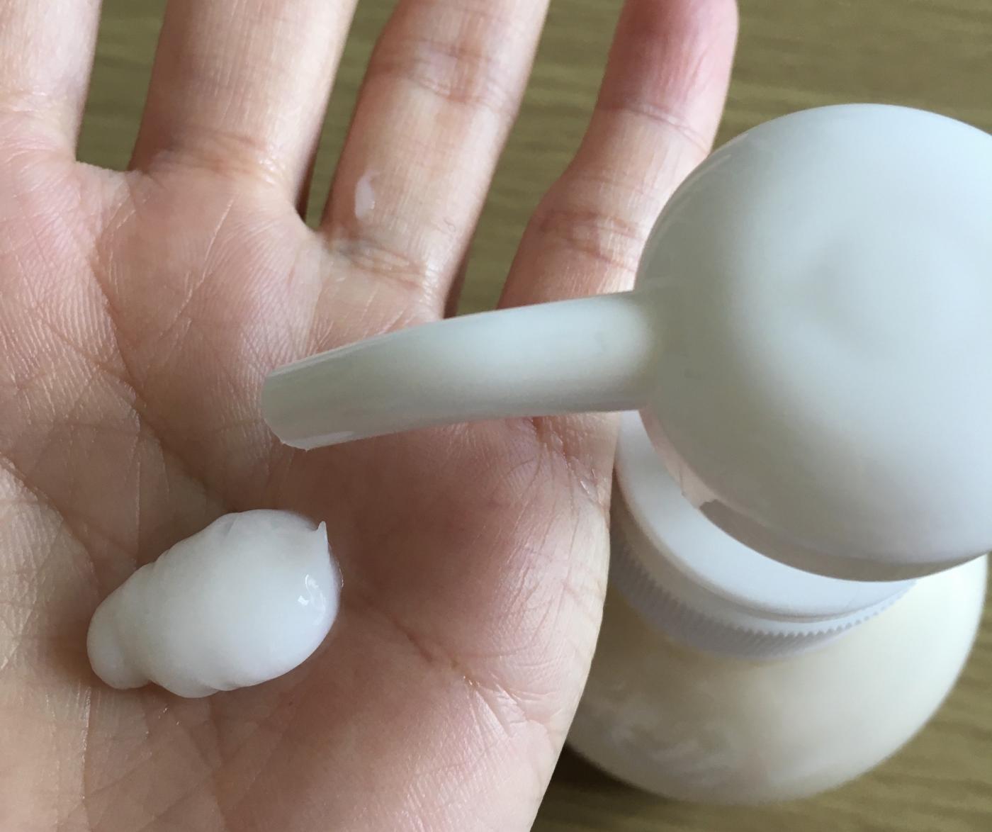 トリートメントの方はシャンプーと対照的にぽってりとかためのクリームのような感じです。