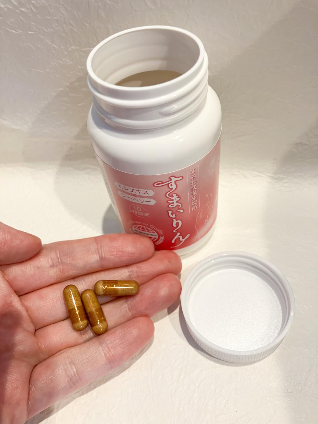 1日3粒ですが、カプセル型ということもあって、においもなく、小粒で飲めてとってもありがたいです。