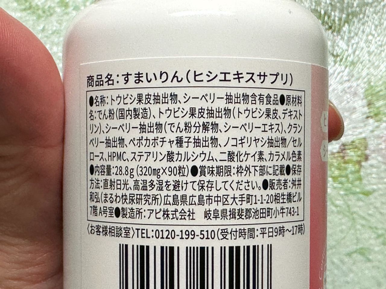 頻尿ケアサプリ、すまいりん(ヒシエキスサプリ)|モニター まぁやさん