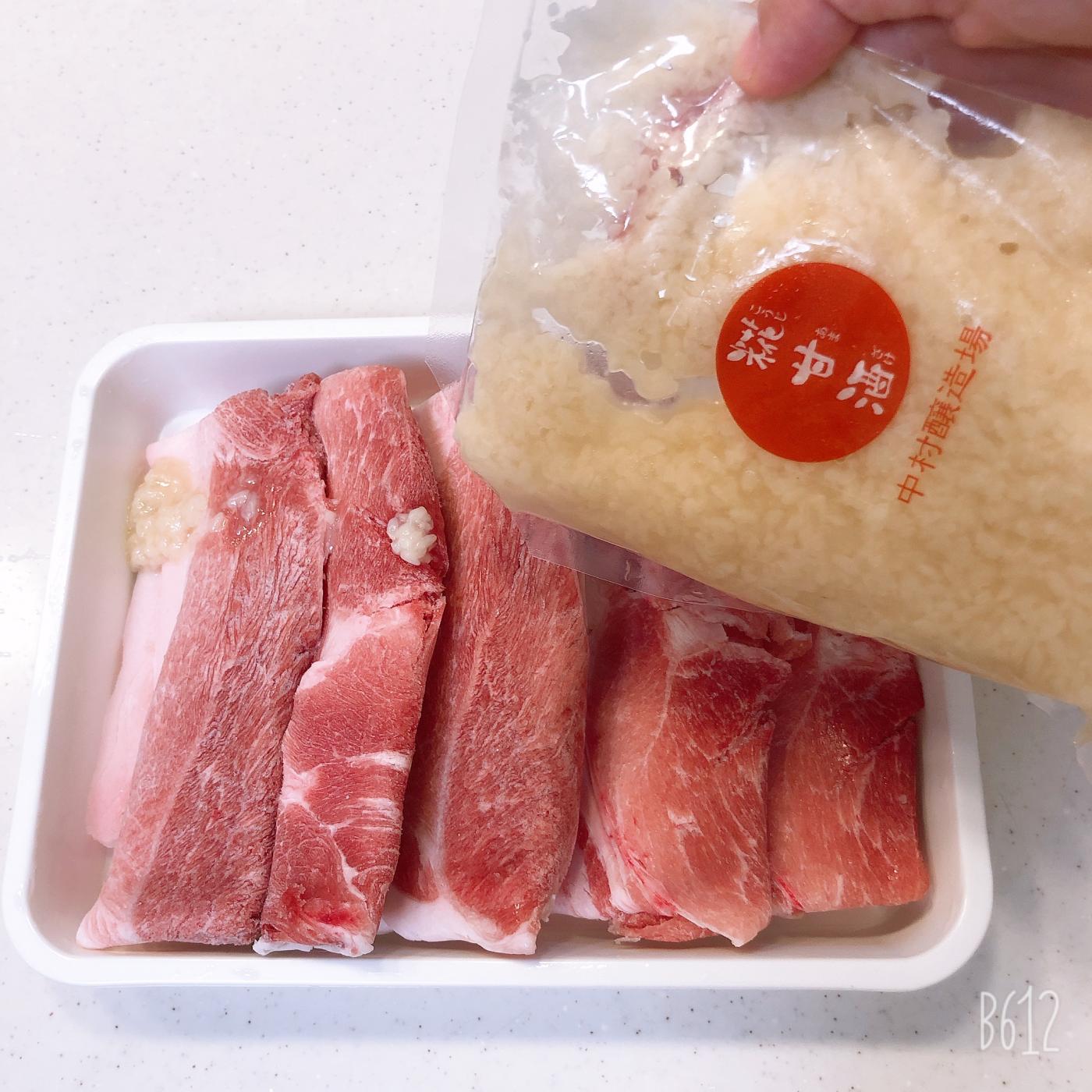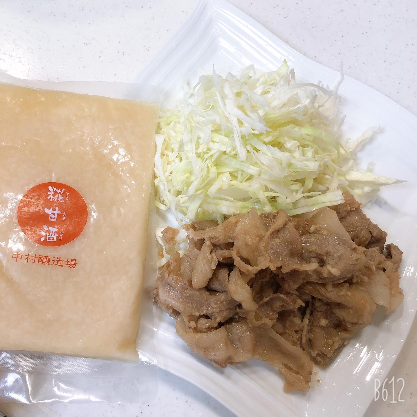 ホット甘酒にして余ったものを豚肉に数時間漬け込み、醤油と生姜を足して豚肉の生姜焼きに。