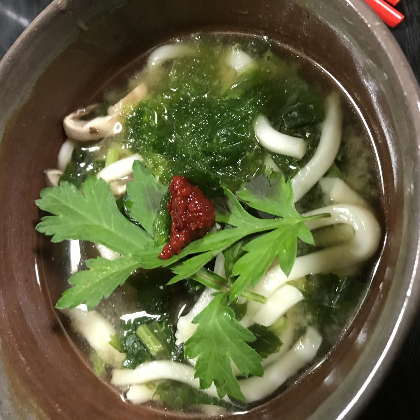 シンプルにお味噌汁と、味噌うどんにコチュジャンちょい足しで頂きました。