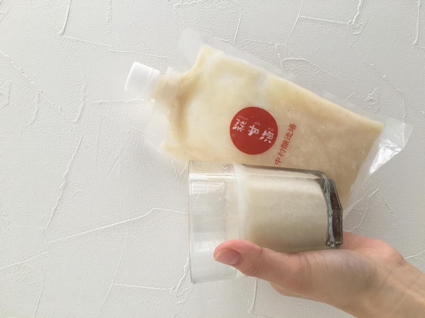 私は写真ではお水と甘酒を1:3で割って飲みましたが、お湯で割っても良し、牛乳や美容を意識してらっしゃる方は豆乳と割って飲むのもオススメです!