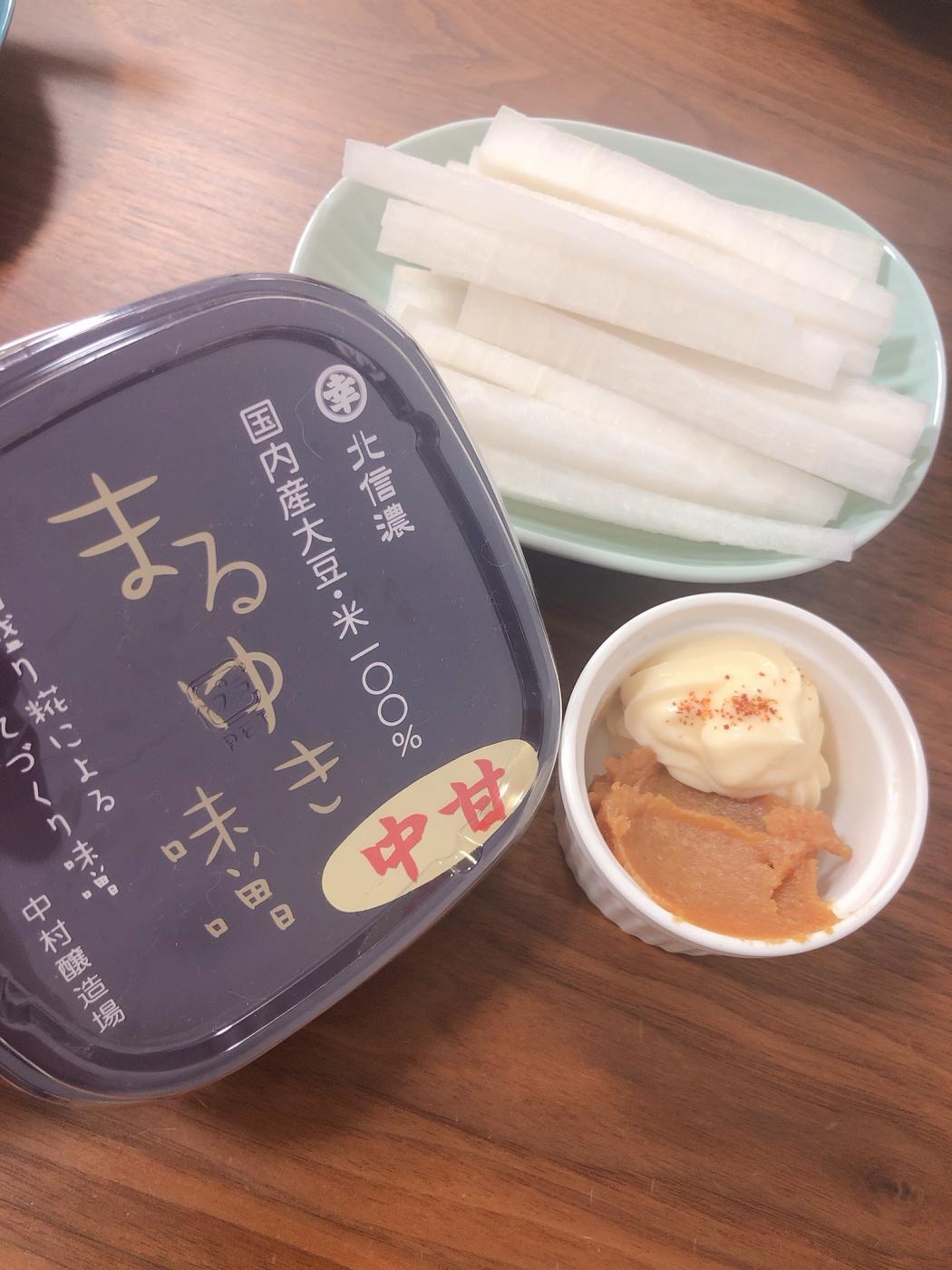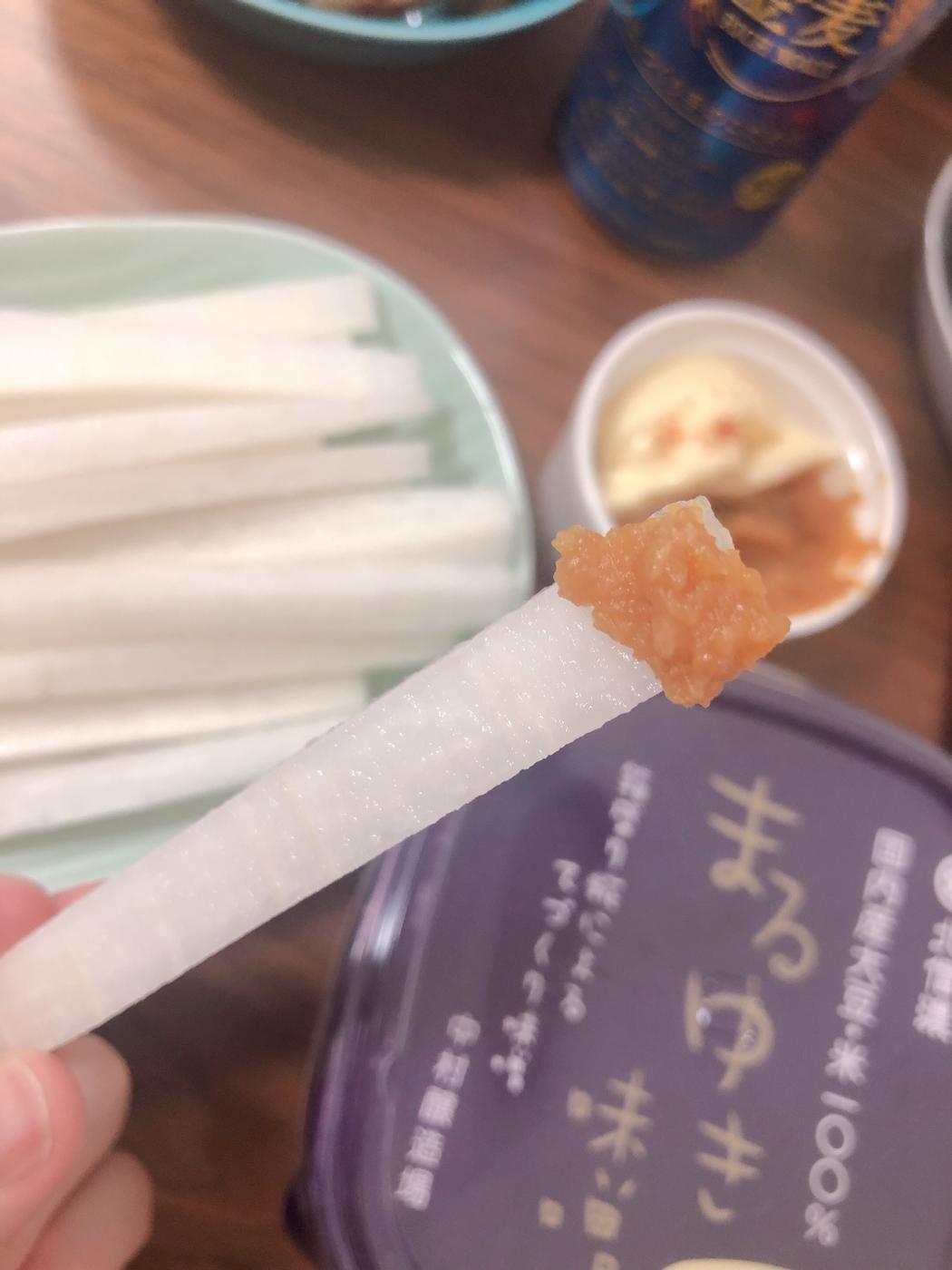 野菜スティックを用意し晩酌のおつまみにも出しましたが、大根に味噌をそのまま付けて食べてた旦那が〝これ美味いなー〟と!