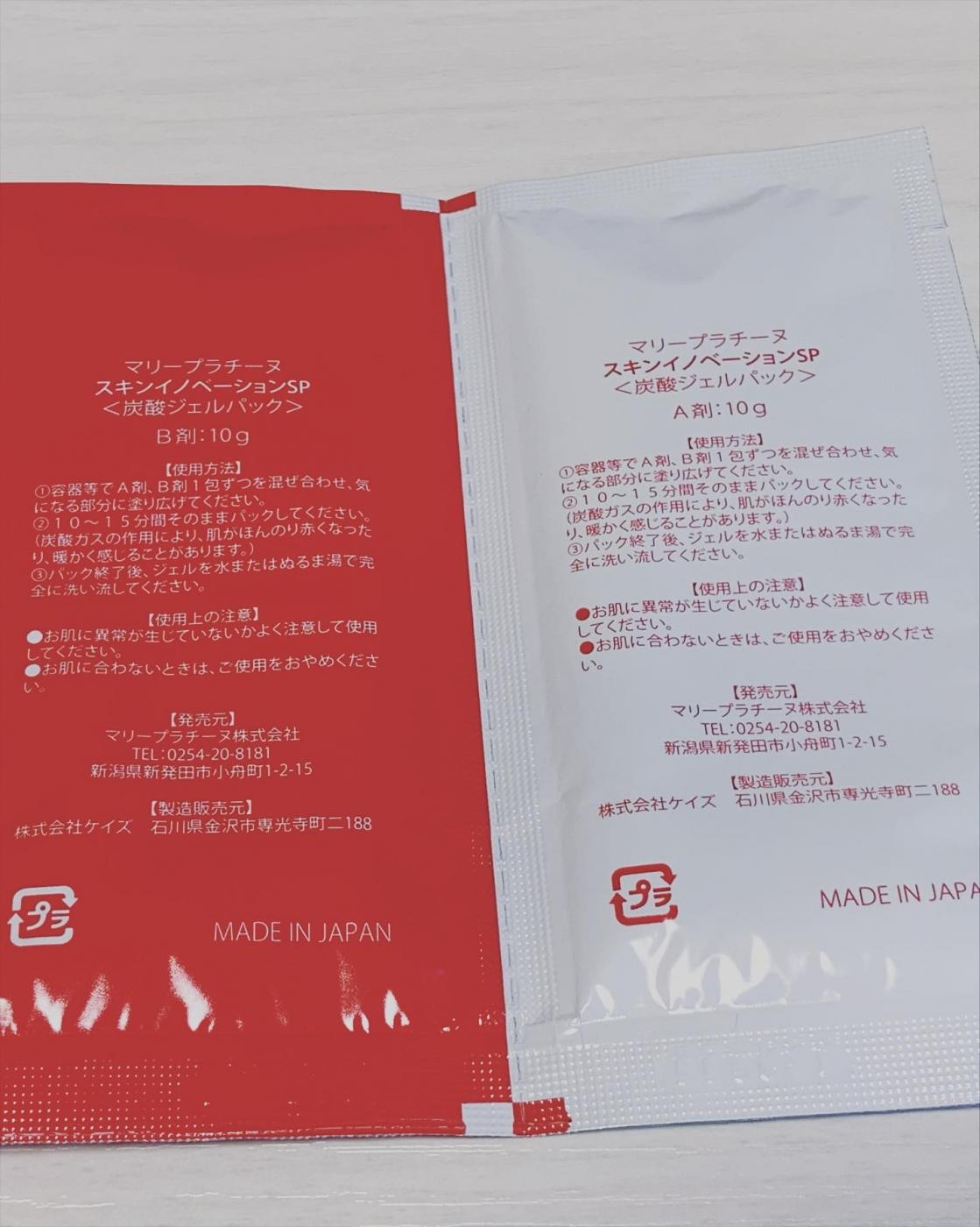 使い方としては、A剤B剤を切り離さず2つに折り、同時に開封すると手に取る際に便利です? 混ぜるのはお皿でもOKですが、私は手のひらの上でA剤B剤を混ぜました。泡立ちましたら、泡を潰さないようにお肌に塗り広げます。15分〜20分、最大で30分程パックします。パック終了後は、水またはぬるま湯で洗い流します。