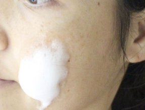 この泡を潰さないように顔に塗っていきます。半分の量でも充分顔全体に行き渡りました。