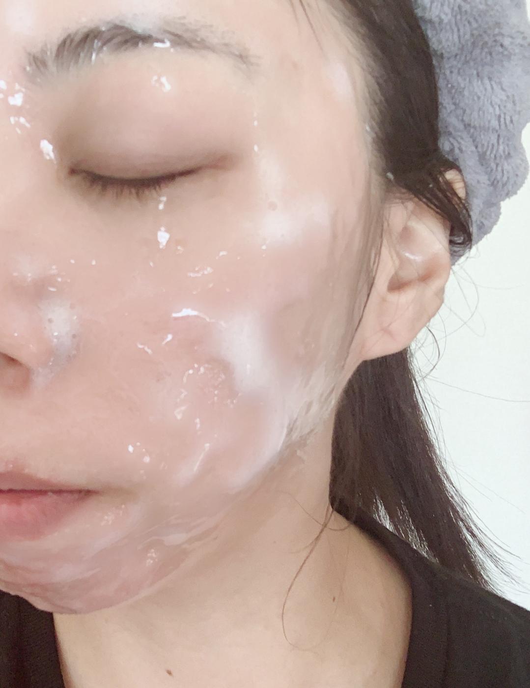 混ぜていくとすぐに泡立つので潰さないように顔に塗って15〜20分ぐらいで流します。