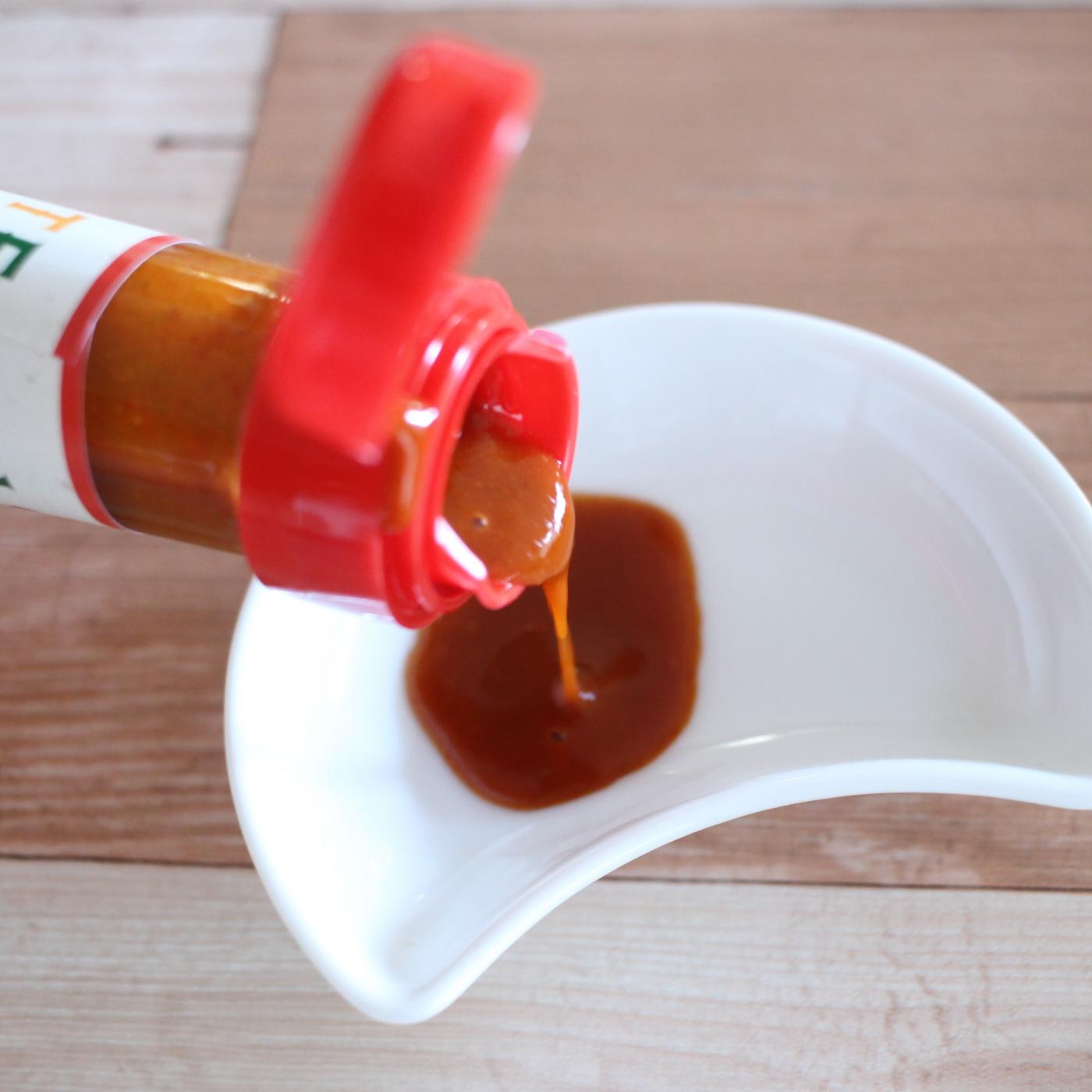赤い色と、スパイシーホットソースということで、辛いんだろうなとタバスコのような味を想像していたのですが、思っていたよりも辛くない!!