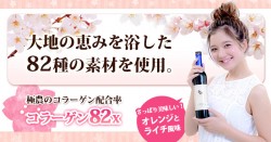 製品1本あたりフィッシュコラーゲン120,000mgはじめ・桜の花エキス・椿種子抽出物・ローヤルゼリーなどの美容成分配合。