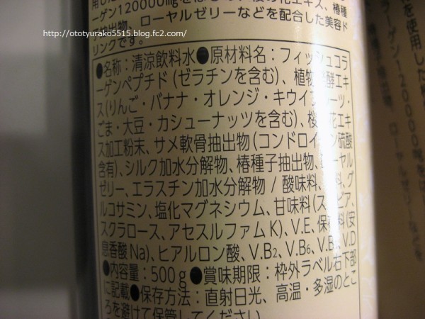 フィッシュコラーゲンが120,000mgはいっており、他にも桜美容成分たっぷり配合したドリンクのサプリメントです。美肌はもちろん、グルコサミン配合だから関節とかにもよさそう。